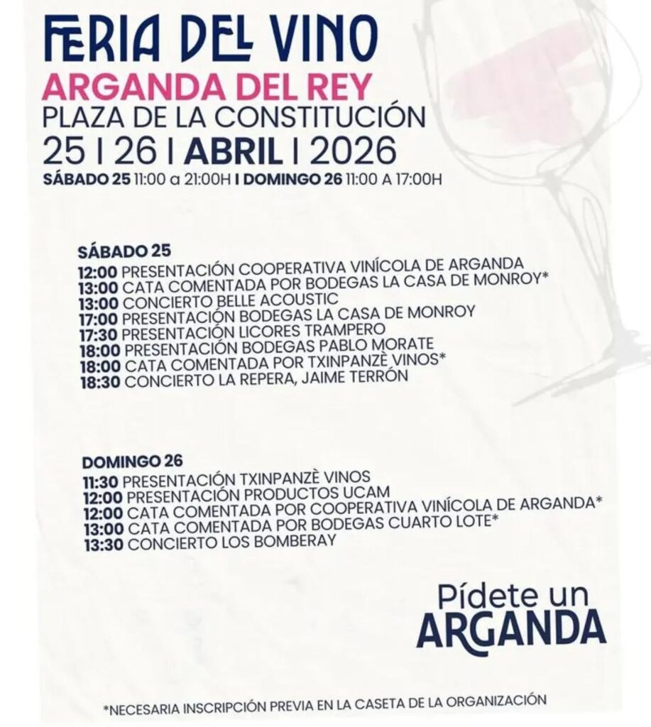 Programación completa de la Feria del Vino de Arganda 2026: catas, conciertos y más